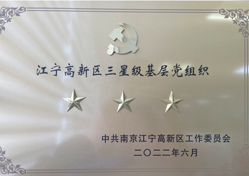 近日,南京因泰萊黨支部通過(guò)中共南京江寧高新區(qū)工作委員會(huì)的嚴(yán)格考核,獲評(píng)2021-2022年度“三星級(jí)黨組織”稱號(hào)。